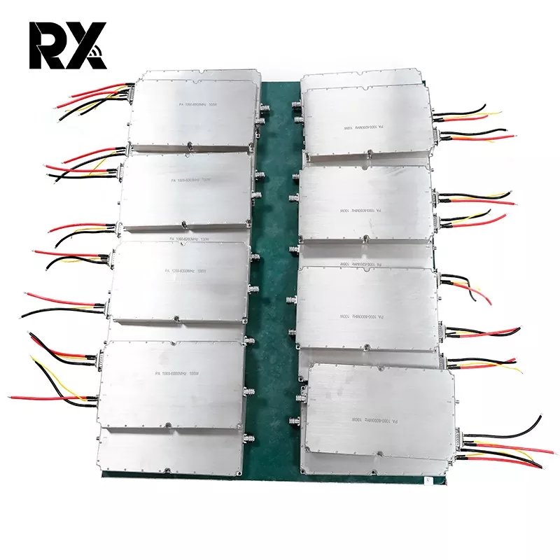 This 1000-6000MHz 100W Broadband RF Power Amplifier Module is a high-performance 100W wideband power amplifier module operating across a broad frequency range of 1000MHz to 6000MHz. Designed with advanced microwave circuitry and high-quality semiconductor components, it is engineered for professional applications that demand exceptional power, bandwidth, and stability. It’s widely used in critical fields such as modern communication infrastructure, radar detection systems, and drone defense (FPV countermeasures), serving as a core component for enhancing signal coverage, extending system range, and improving anti-jamming capabilities.